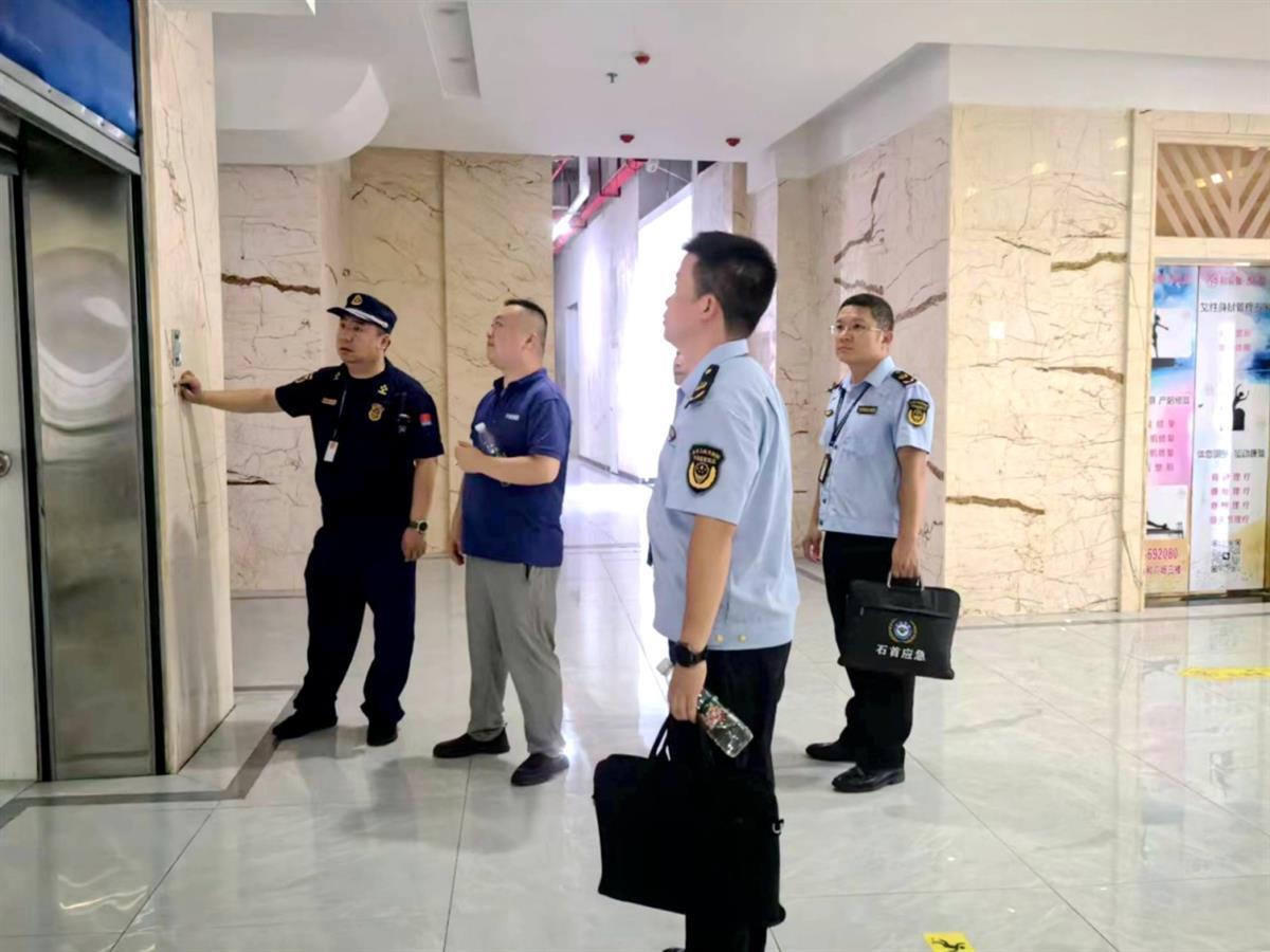 检查组随机抽查了石首市城市广场、才知广场、旺和广场三家商业综合体,检查了三家单位“一会三安”(班前安全例会,安全员、安全帽、安全绳)制度落实情况,并就物业及经营商户安全生产主体责任落实、隐患排查治理机制、电动自行车违规充电和停放等情况进行了重点检查。