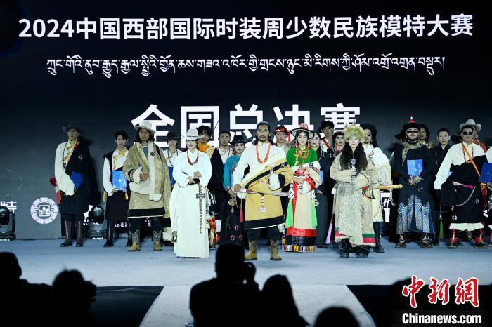 7月30日,2024中国西部国际时装周少数民族模特大赛全国总决赛在四川省甘孜藏族自治州理塘举行,来自四川、青海、西藏等5个省、自治区的31名模特参加决赛,经过激烈比拼,现场评出了冠亚季军、网络人气奖等奖项。图为2024中国西部国际时装周少数民族模特大赛全国总决赛上模特们登台展示。中新社记者 刘忠俊 摄