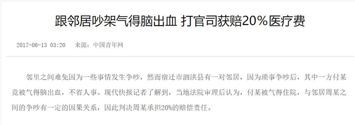 这个案例引起了议论。有网友认为,祝某在与盛某吵架一年后才去世,要盛某承担赔偿责任,这似乎有点说不过去。也有网友认为,盛某无故阻拦施工,与人争吵,把人气病了,应该担责。