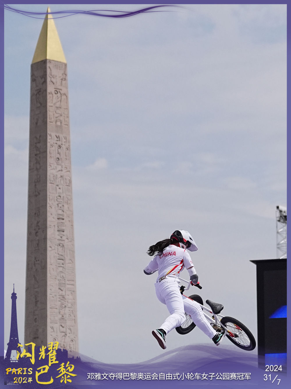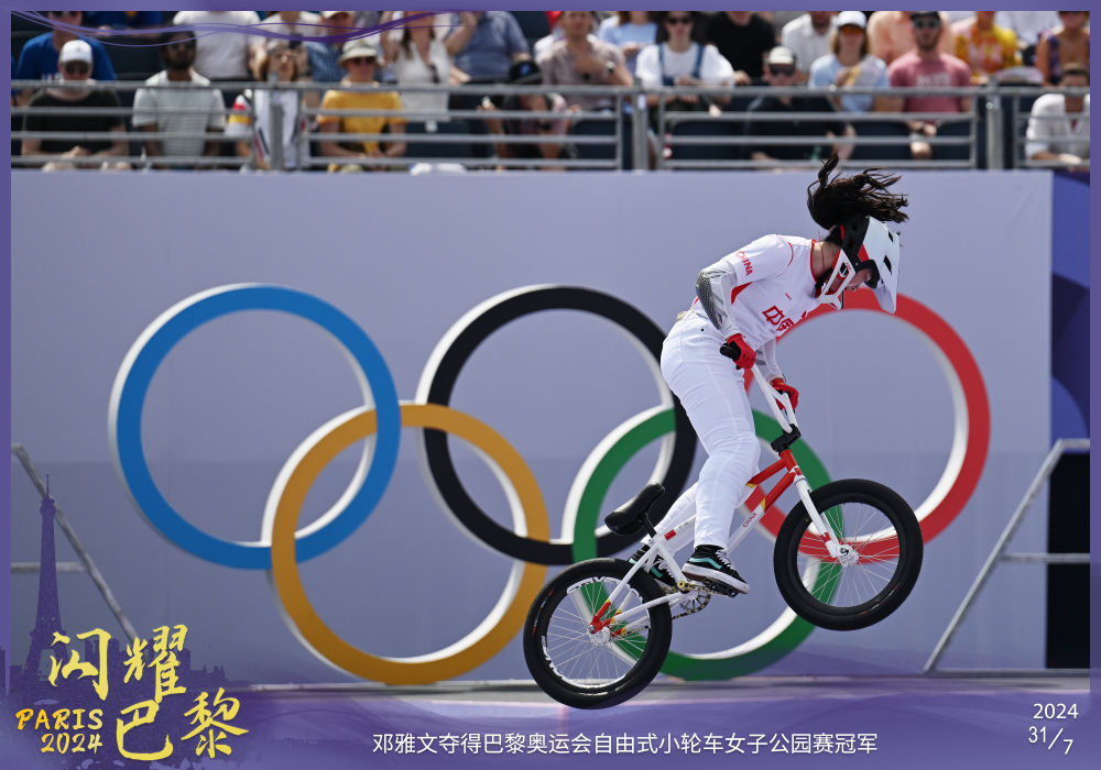 闪耀巴黎丨创造历史!邓雅文为中国队首夺自由式小轮车奥运冠军