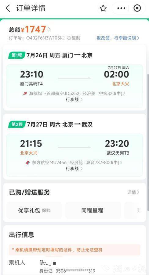 好不容易赶到机场,厦门飞往北京的航班又晚点了,等陈平到达北京大兴机场时,已是27日凌晨2时许。然而,北京飞武汉的航班也晚点了,他只好穿着湿衣服在机场等待。这一等,就是22小时,他累了就坐在机场的躺椅上眯一会儿,饿了就吃在机场便利店买的面包、泡面、盒饭。28日凌晨,飞机终于从北京大兴机场起飞,到武汉天河机场时,已经凌晨2时许。尽管一路困难重重,但陈平从没想过放弃,他说:“只要患者能等到我的造血干细胞,这一切都是值得的。”