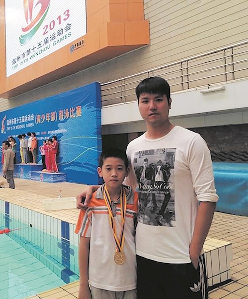 2013年温州市第十五届运动会潘展乐与叶信合影