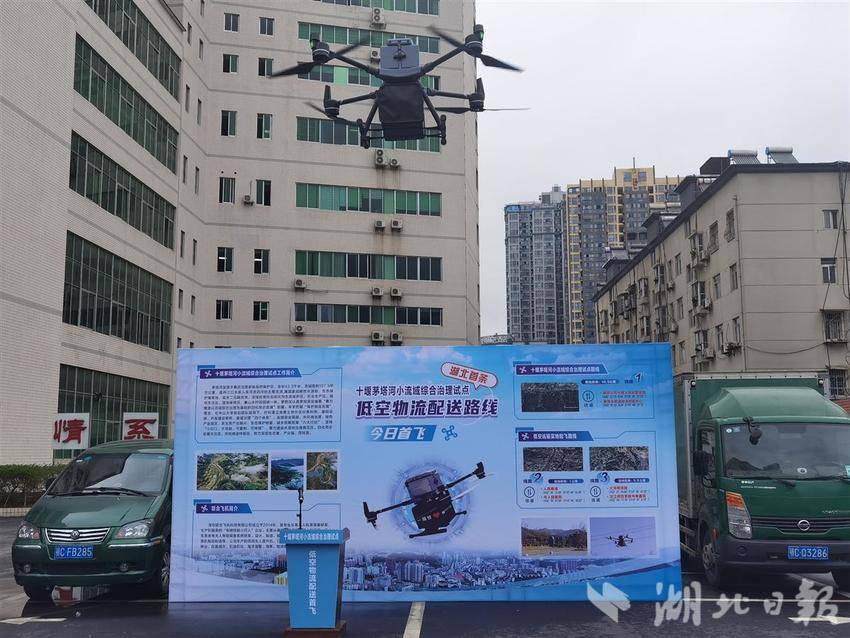 3月23日,随着1架无人机从十堰市邮政公司城区火车站营业部出发,经过15分钟的飞行,到达茅箭区茅塔乡寄递物流共配中心,我省首条低空物流配送线路在十堰首飞。