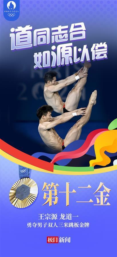 北京时间8月2日17时,巴黎奥运会跳水项目男子双人3米跳板决赛在巴黎水上运动中心举行,湖北运动员王宗源与国家队队友龙道一携手出战,最终以446.10分的成绩夺得金牌,这是中国体育代表队在巴黎奥运会夺得的第十二枚金牌,也是湖北奥运健儿在巴黎奥运会夺得的第二枚金牌。