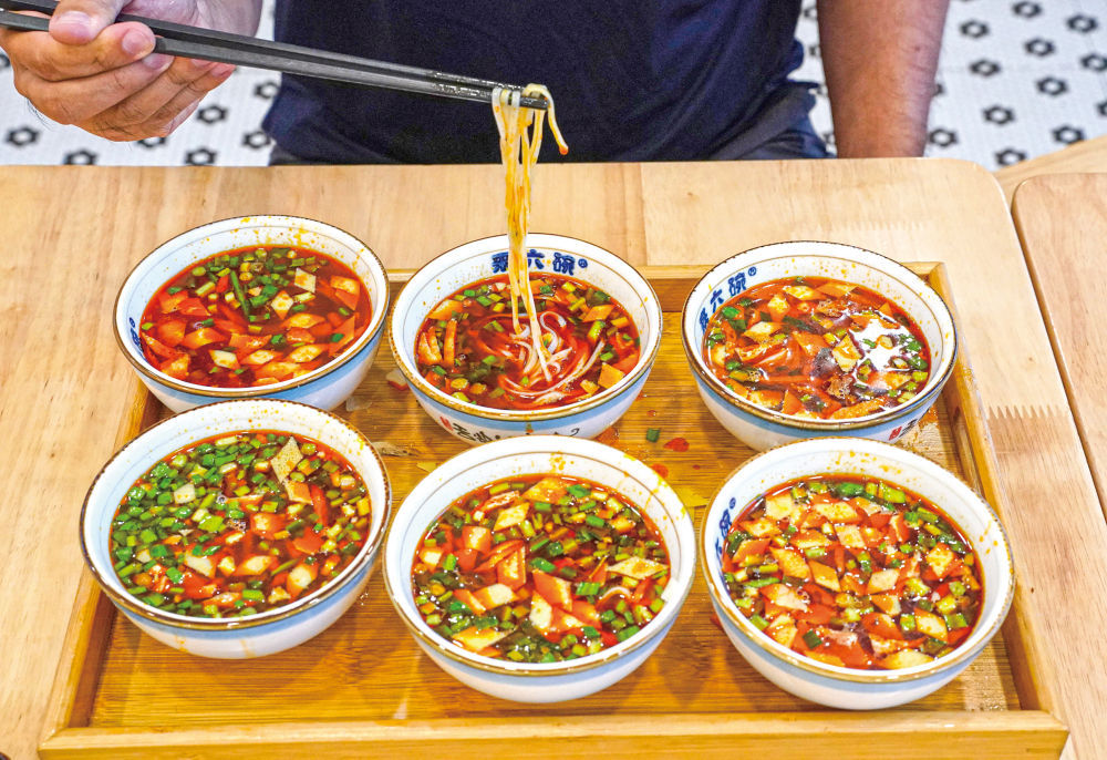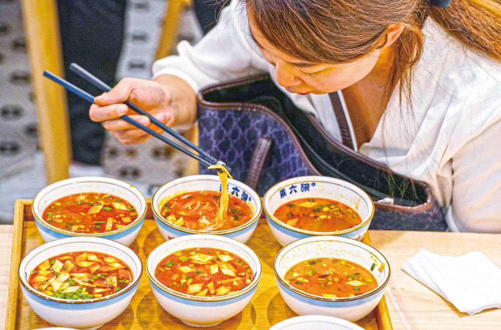 “臊子面也被称作‘一口香’,顾名思义就是每碗面只有一口的量,这种吃法可以极大保留汤的鲜美,品尝面条的筋道。因此,岐山人把吃臊子面也叫‘吸’臊子面。”杨慧敏说,“一个人一次单独吃上几十碗岐山臊子面也不稀奇,现在饭店里的一份臊子面多是六小碗。”