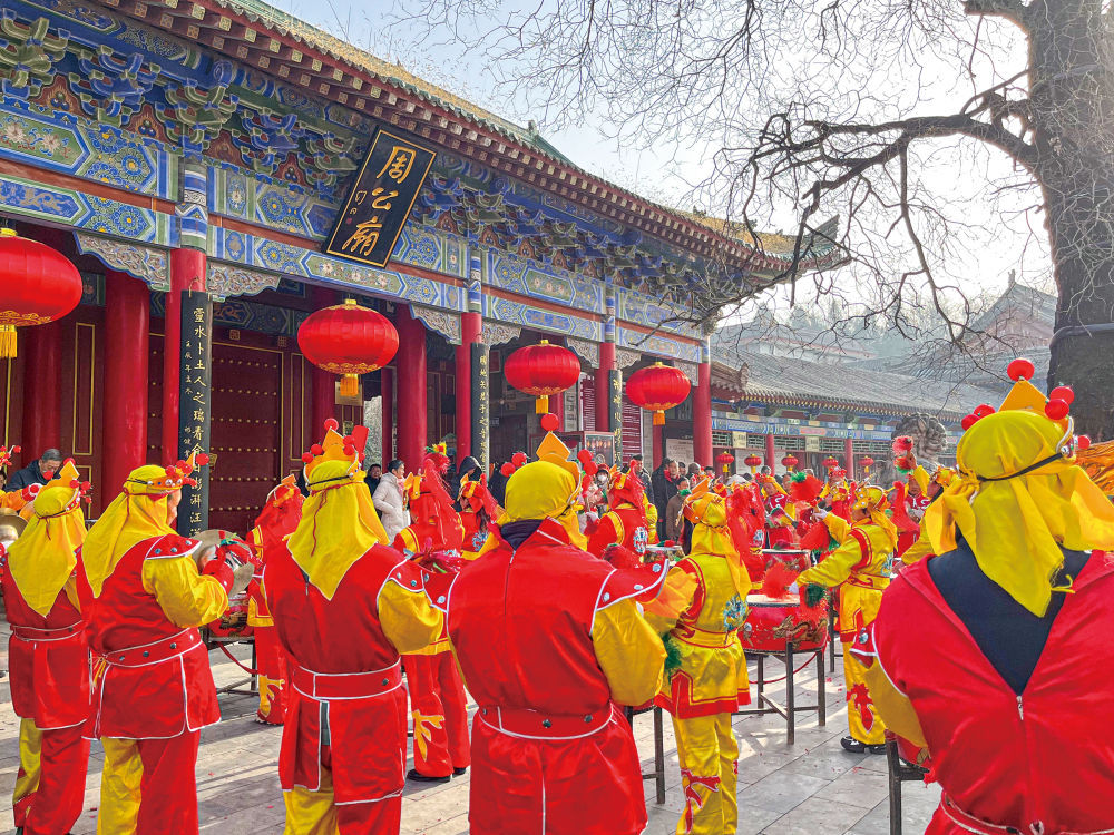 当地群众在周公庙景区进行非遗演出。受访单位供图