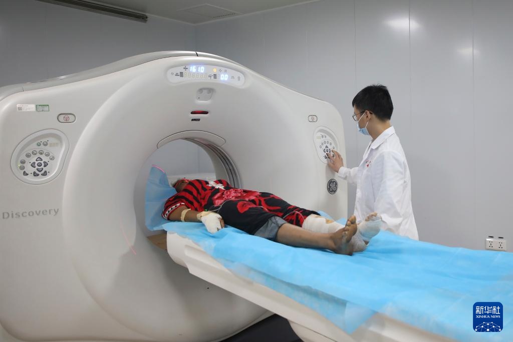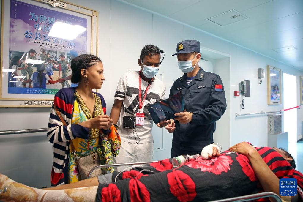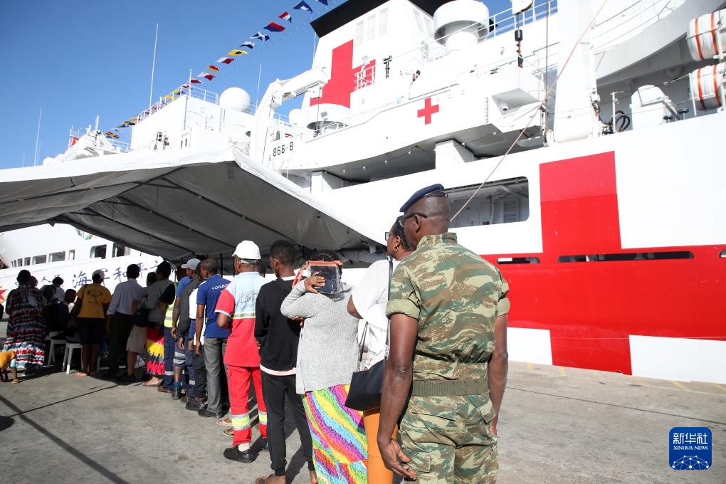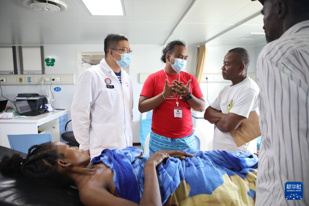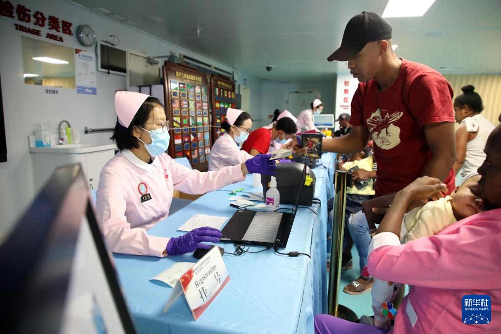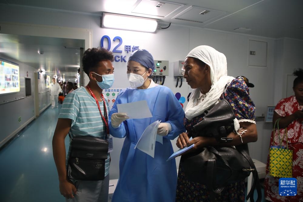 7月30日,中国海军“和平方舟”号医院船医务人员在马达加斯加开展医疗服务。