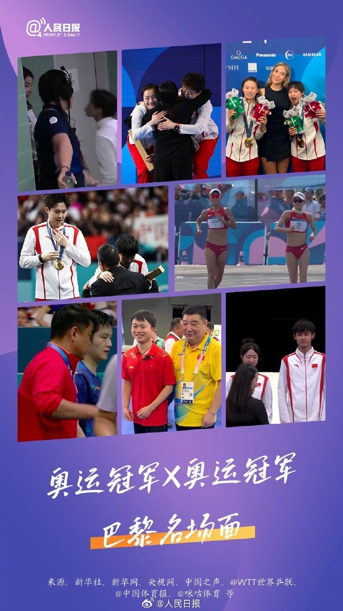 巴黎奥运赛程过半,赛场内外,上演着一幕幕梦幻联动。或师徒、或队友、或偶像……这些奥运冠军同框名场面,有对体育的热爱,有对梦想的坚守,有对荣光的传承。这个夏天,继续为运动员加油!敬拼搏,敬梦想,敬传承!