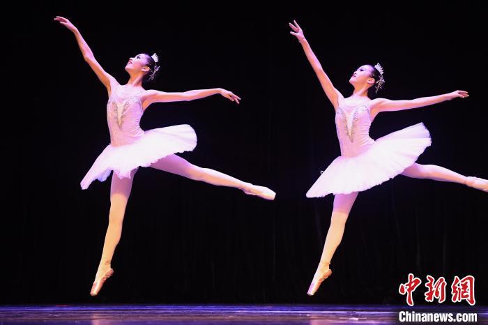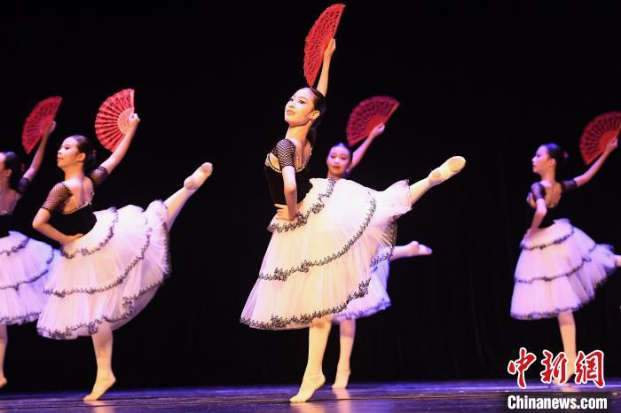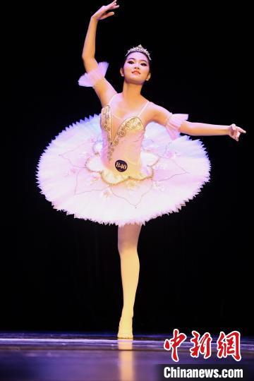 8月3日,第九届RDGP国际舞蹈展演·深圳赛区在南山文体中心剧院举行。参赛选手分别进行芭蕾独舞、中国舞独舞、现代舞独舞、芭蕾群舞、现代舞群舞的比赛。图为芭蕾独舞选手在比赛中。中新社记者 陈文 摄