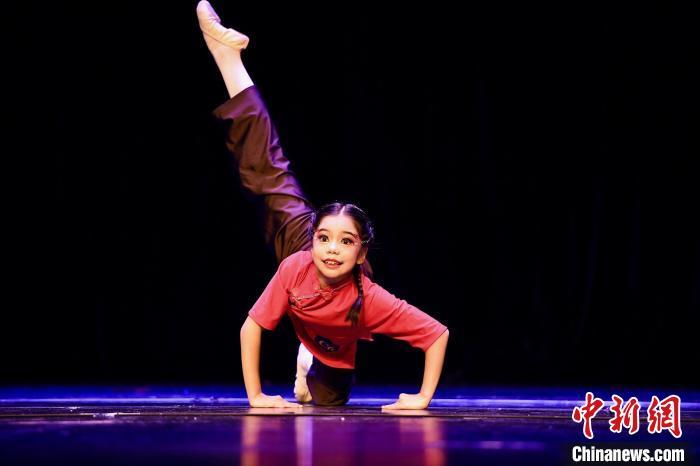 8月3日,第九届RDGP国际舞蹈展演·深圳赛区在南山文体中心剧院举行。参赛选手分别进行芭蕾独舞、中国舞独舞、现代舞独舞、芭蕾群舞、现代舞群舞的比赛。图为中国舞选手在比赛中。中新社记者 陈文 摄