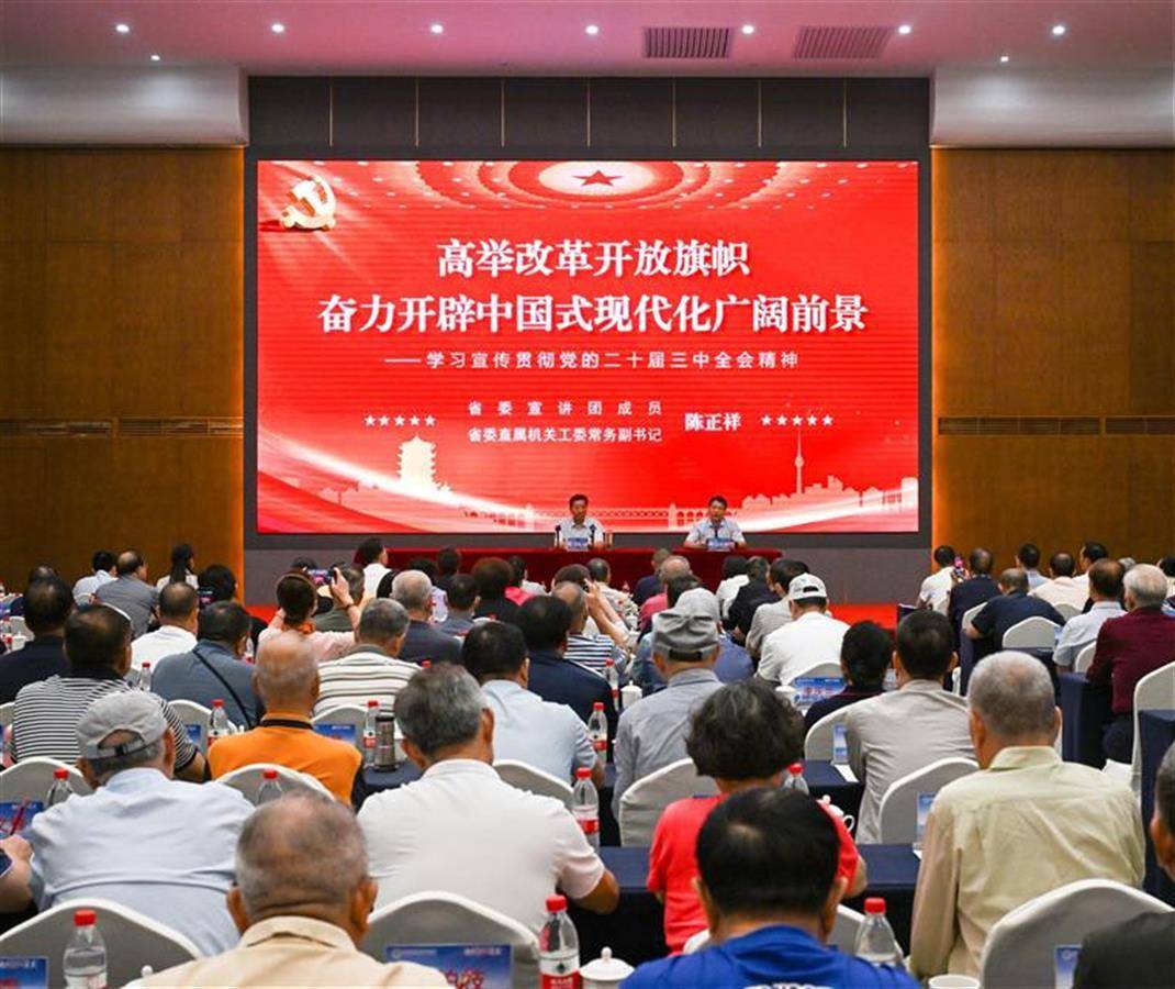 湖北日报讯(记者王成龙、通讯员曾伟、关杰青)8月3日,省委宣讲团成员、省委直属机关工委常务副书记陈正祥为省直机关的180位老干部宣讲了党的二十届三中全会精神。