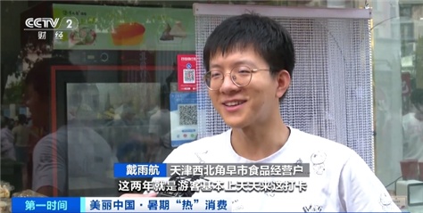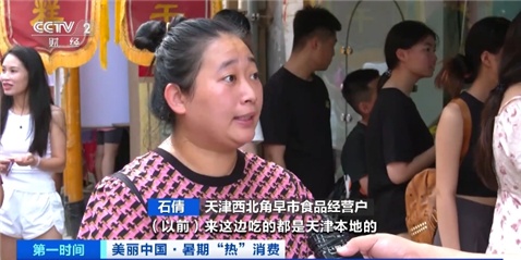 天津西北角早市食品经营户 戴雨航:这两年游客基本上天天来这打卡,现在80%以上都是外地的游客,销售额基本上较以前翻3倍。