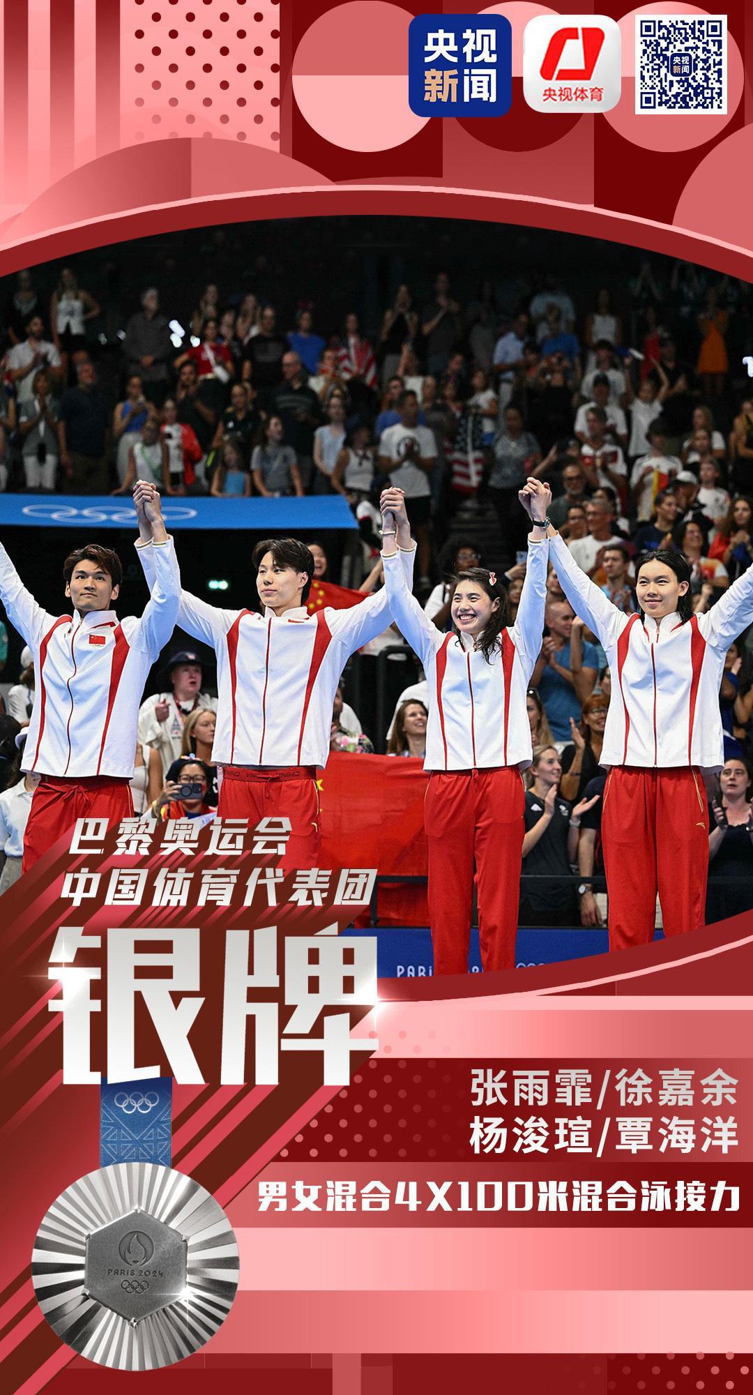 破亚洲纪录!男女混合4×100米混合泳接力中国队摘银
