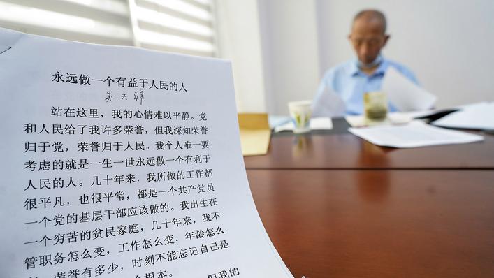 吴天祥撰写的心声《永远做一个有益于人民的人》,他常拿出来激励自己