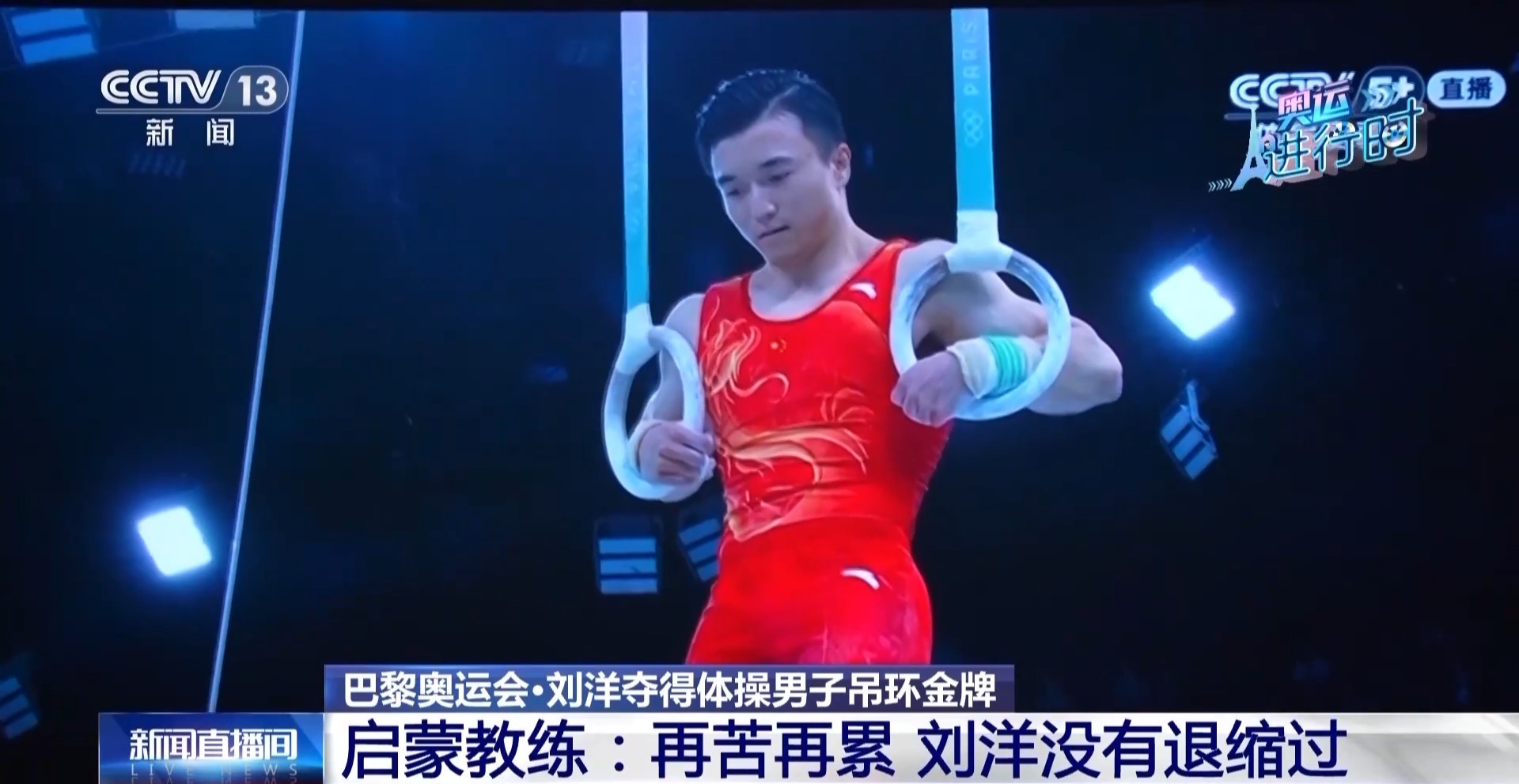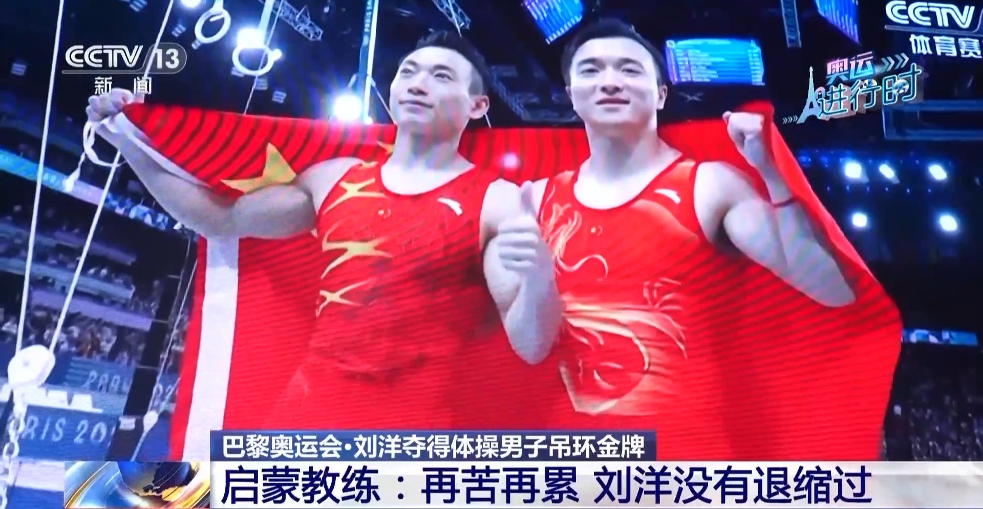如今,这个在吊环上神情坚定的男孩,已经成为奥运赛场上的冠军。在巴黎奥运会竞技体操男子吊环决赛的比赛中,刘洋的动作一气呵成、收放自如,力量节奏控制精准,落地稳健,全套动作完成质量极高,成功卫冕,为中国体操队摘得本届巴黎奥运会首枚金牌。刘洋的父母和他的启蒙教练孔繁启,在鞍山市军事体育学校的会议室里,与全校师生一起在电视机前为刘洋加油助威。