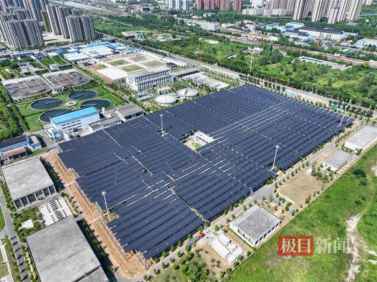 日前,该污水处理厂分布式光伏项目并网发电,1万多块光伏板平均每天可发电近2万度,预计覆盖厂区27%的电力需求。