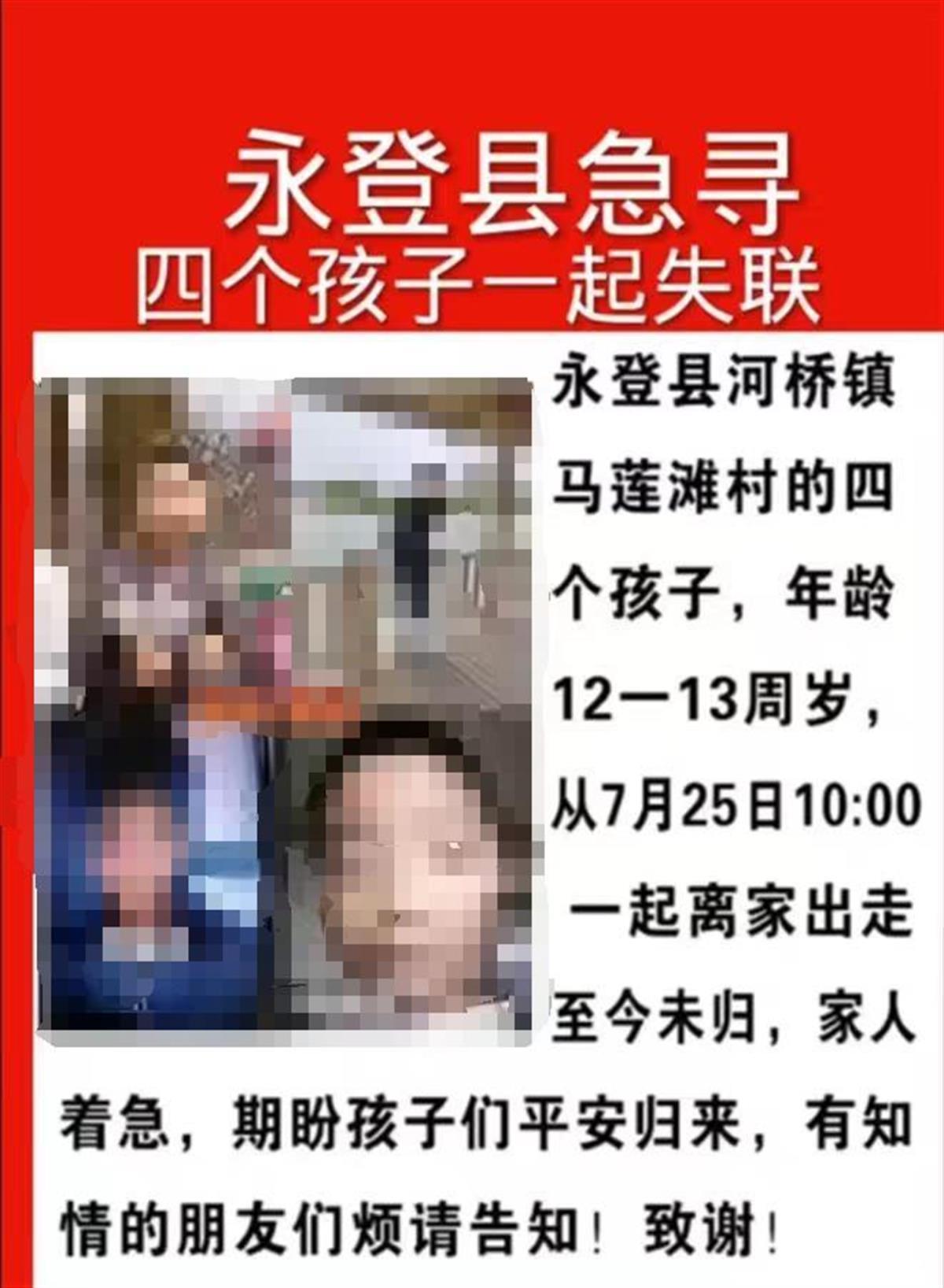 7月25日,甘肃省兰州市永登县四名少年相约河中游泳后失踪。8月5日下午,极目新闻记者从当地警方了解到,4名失踪少年中已经有3人被找到,均不幸身亡。