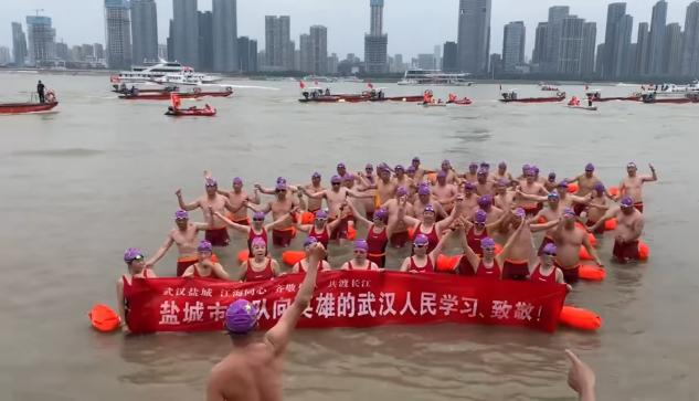 江苏盐城方队自2016年成立以来,先后组队参加了第43届、44届、48届武汉7·16渡江节。曾荣获“最佳风采奖”。今年,江苏盐城方队聚集了来自盐城市区以及周边包括淮安、扬州、南通等地区的60名成员,准备再次挑战横渡长江。他们将用最饱满的热情,最昂扬的斗志,最自律的行为,最出彩的表现,致敬伟人,横渡长江。
