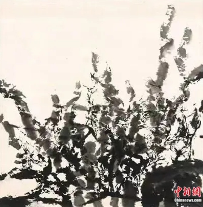 资料图:赵无极于1980年创作的中国画《无题》,以纸本水墨的方式呈现,并结合了欧美抽象艺术的特点,现被中国美术学院美术馆收藏。