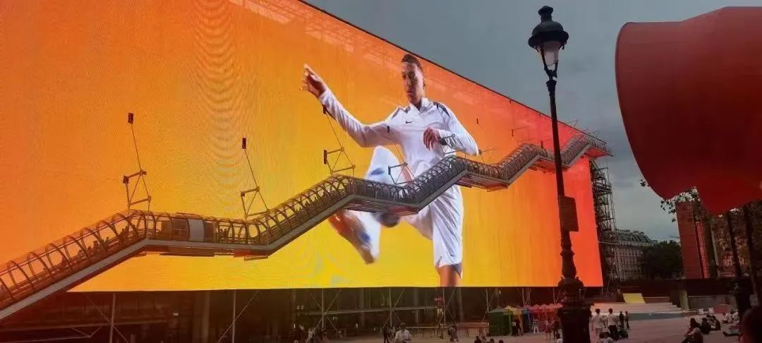 这座巨大的透明光幕墙,仿佛是一面巨大的画卷,镶嵌在巴黎市中心,全天候不间断地展示各类奥运信息,不仅为游客带来前所未有的视觉盛宴,还在夜幕降临时化身巨大的屏幕,播放着奥运会的精彩瞬间,吸引着无数游客驻足观看,拍照留念。