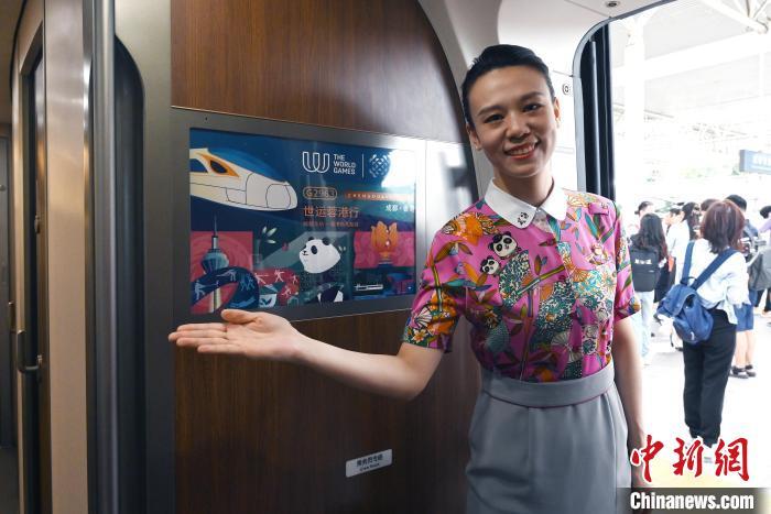 当日上午,“世运蓉港行”主题列车缓缓从成都东站驶出,将在18时55分抵达香港西九龙站。该趟主题列车内部装饰以世运会体育图标为纽带,串联起太阳神鸟、大熊猫、紫荆花广场和维多利亚港等成都、香港两地的标志性文化符号,并融入车窗、车门、座椅和车厢中。