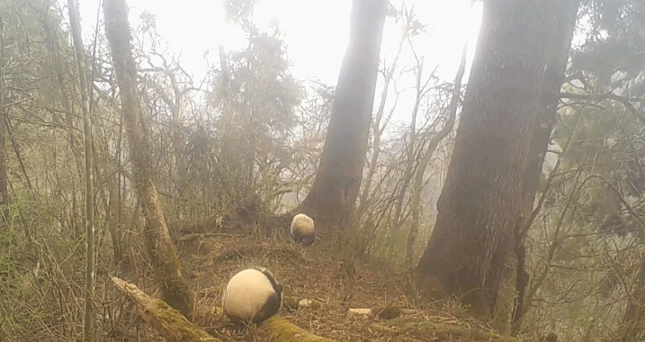 据工作人员介绍,受雨季影响,画面中的野生大熊猫皮毛被污泥附着,几个翻滚下来,瞬间变身“泥熊”。
