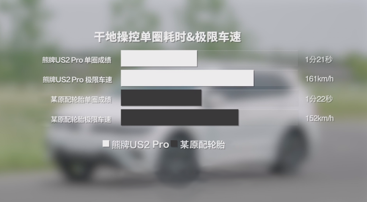 同样基于国家级测试场地的专业测试中,熊牌US2 Pro在干操控路面的极速成绩达到了惊人的161km/h,较同场测试的原配轮胎极速提升了9km/h,圈速则大幅提升了1秒。 在驾驶人员驾驶车辆相同的情况下,仅依靠换轮胎,便可大幅提升圈速,足以可见熊牌US2 Pro的高速稳定性能足够强悍。