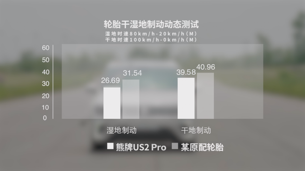 据悉,在基于国家级测试场地的专业测试中,熊牌US2 Pro在模拟雨天行车状态的水膜路面上,80-20的制动距离仅为26.69m,较同场测试的原配轮胎的制动距离足足缩短4.85米,相当于一辆B级车的车身长度。