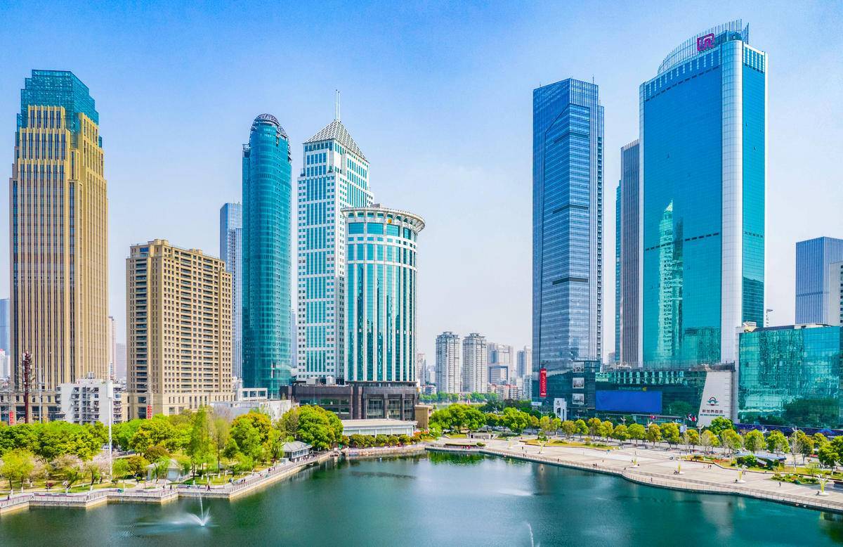 武汉江汉区金融街亿元楼宇集聚 。(湖北日报全媒记者 薛婷 摄)