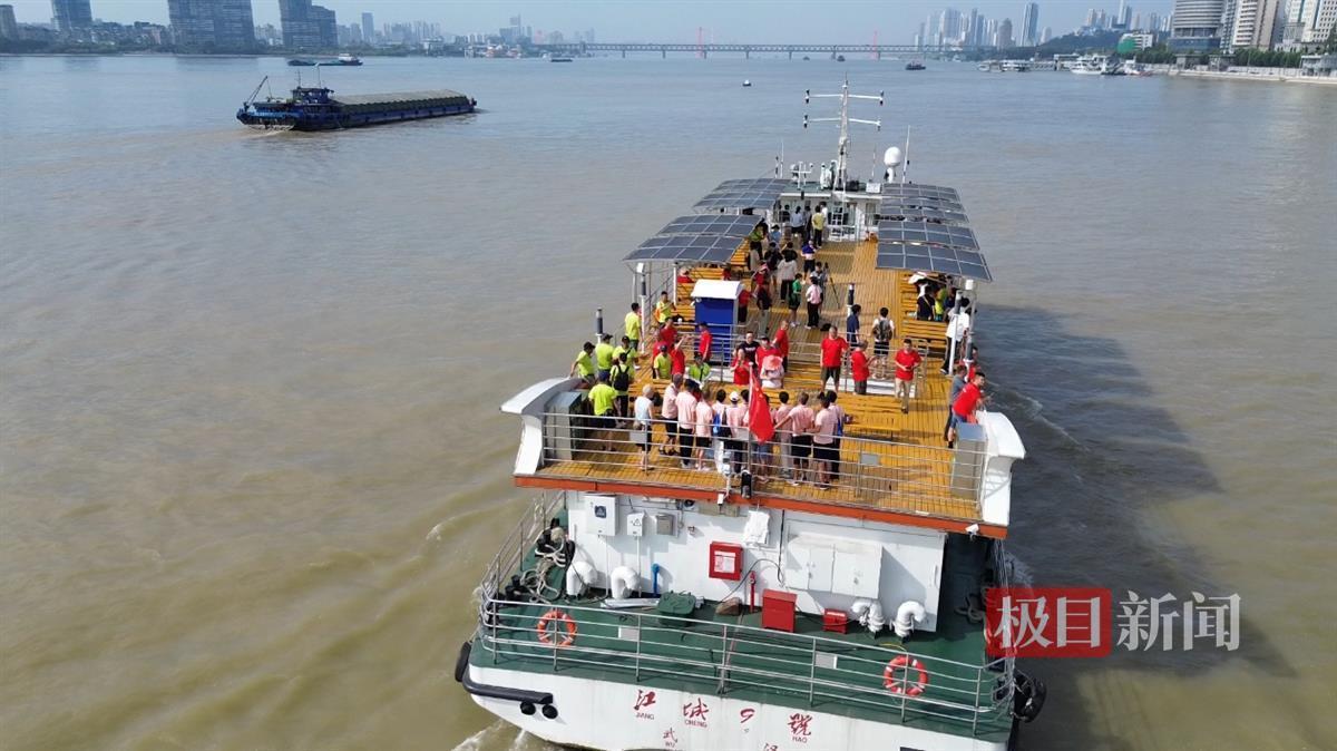 8月7日早上8点,来自天南海北的参赛人员齐聚武汉关码头,准备乘船前往渡江路线进行考察。夏日炎炎,不少选手的脸上早已挂满汗珠,可他们仍难以掩饰激动的心情。现场选手们相互关照问候,十分热闹。