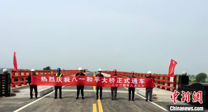 中新网哈尔滨8月8日电 (记者 姜辉)8日,历时4个多月的紧张恢复重建,黑龙江省五常市水毁灾后恢复重建工程八一和平大桥正式通车,以崭新的形象为人民群众提供出行服务。