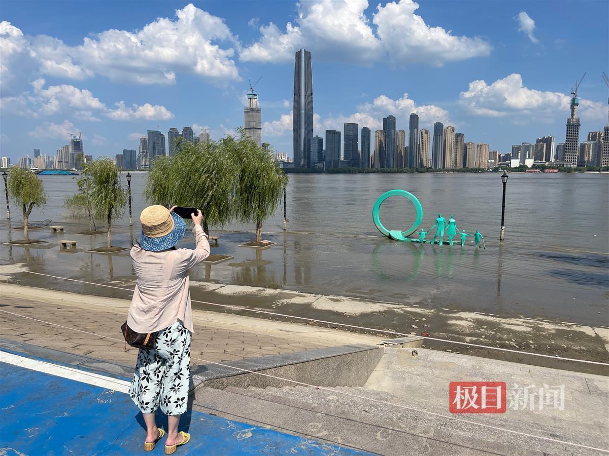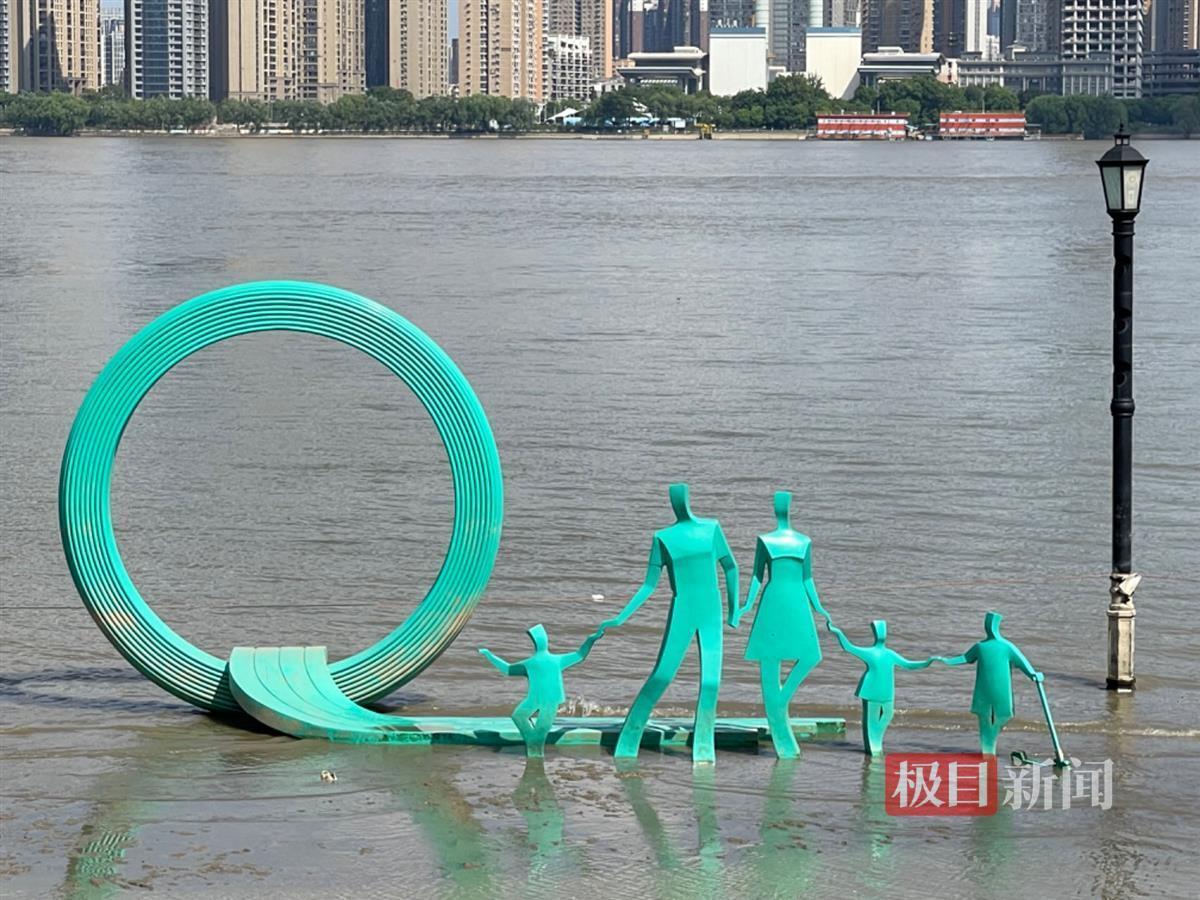 极目新闻记者注意到,“一家五口”雕塑6月下旬开始逐步被江水淹没,“潜水”已有近一个半月时间,绿色的油漆上也残留着不少泥沙和污渍。江滩工作人员介绍,保洁人员正错开高温时段,用最快速度对出水的亲水平台进行清淤,同时也将为雕塑进行全面擦洗,干干净净地迎接市民游客的到来。