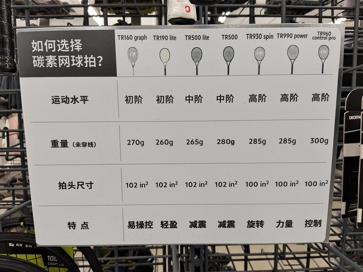 “入门级网球拍,成为初学者的必入单品,价格在100元—250元不等,进阶型网球拍价格在250元—500元不等,市民可按需购买。”迪卡侬门店店员介绍,“300元左右的碳素网球拍,因相对实用、轻量化、易操控、网线易更换,最受消费者的欢迎。”相对高端的网球品牌Wilson,其门店客服表示,一周内已有200多人购买了郑钦文同款复古专业网球拍,售价为1409元起。