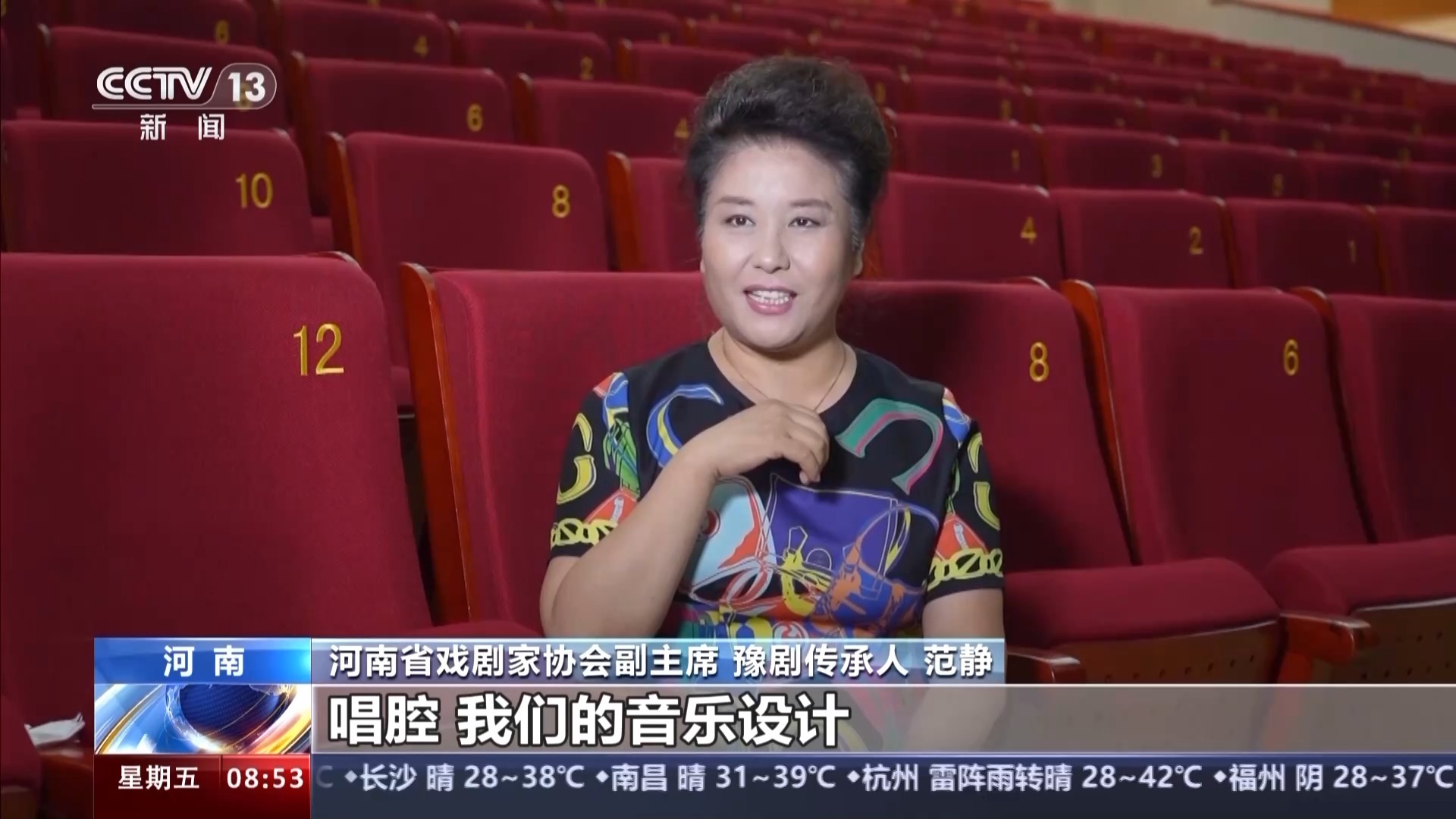 河南省戏剧家协会副主席 豫剧传承人 范静:豫剧我觉得它的优美度就是它的唱腔,尤其是那个花腔,我们的音乐设计会根据人物的不同年龄不同性格来设计这种唱腔,同是花腔都不一样,豫剧这种唱腔很多,非常有表现力。