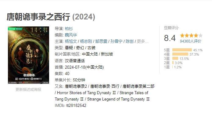 不过,从豆瓣评分来看,《唐朝诡事录之西行》基本一直保持着比较好的口碑,不少人早早开始“催更”第三季,期待继续拍下去。