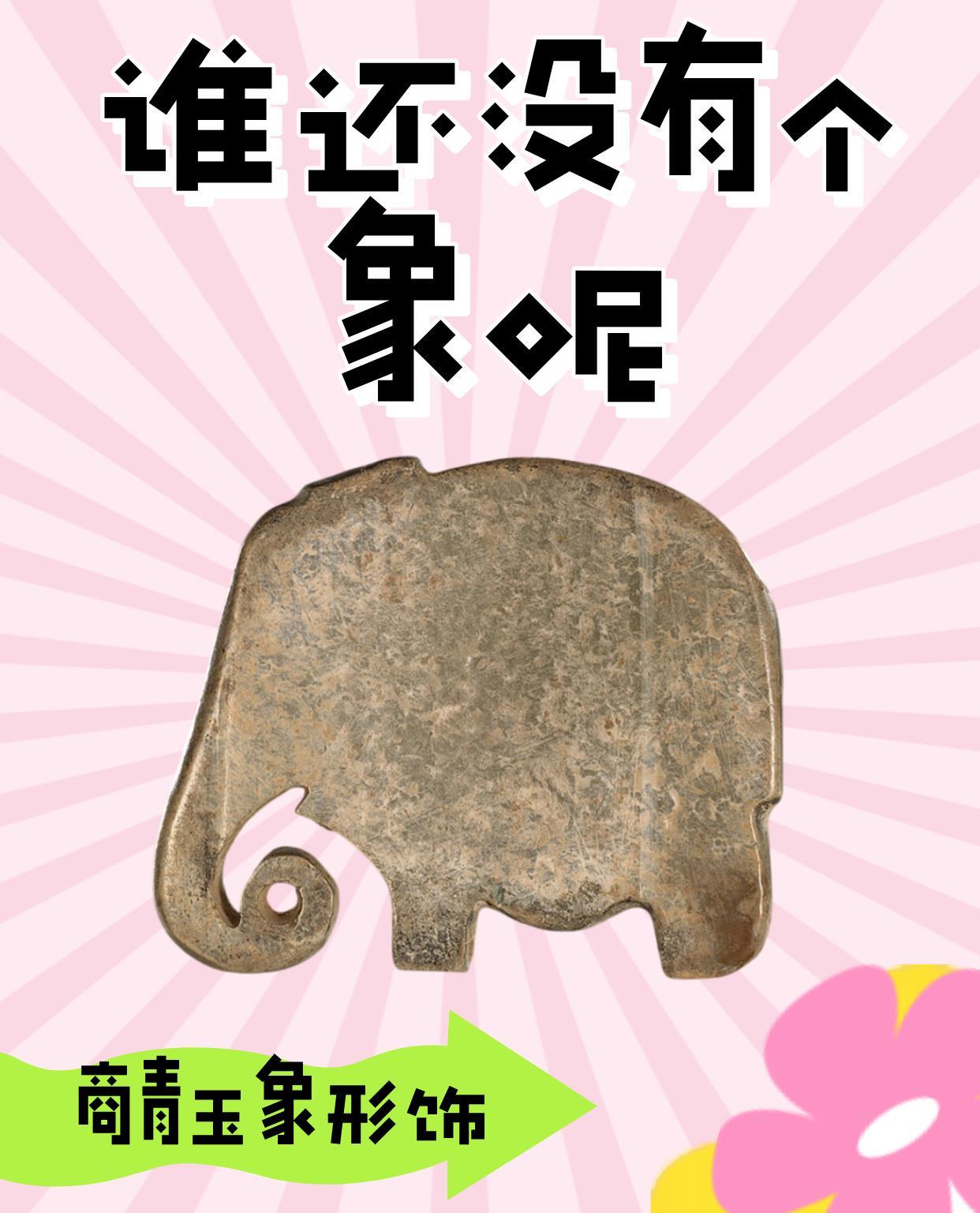 玉质灰白色,表面有褐色沁。玉象扁片状,鼻卷曲,身躯肥壮,肢粗如柱,全身光素无纹。匠师运用极为简括的刀法突出象的长卷鼻与体态特征,古朴拙重,憨态可掬。