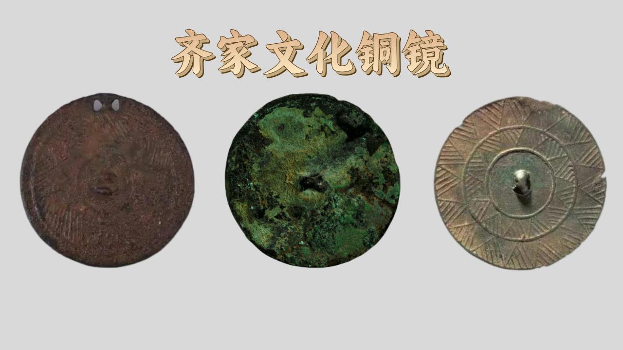 △从左至右依次是:七角星纹铜镜 青海省贵南县尕马台遗址出土 青海省博物馆藏;青铜镜 被誉为“中华第一镜” 甘肃省广河县齐家坪遗址出土 甘肃省文物考古研究所藏;重轮星芒纹铜镜 传甘肃出土 中国国家博物馆藏。