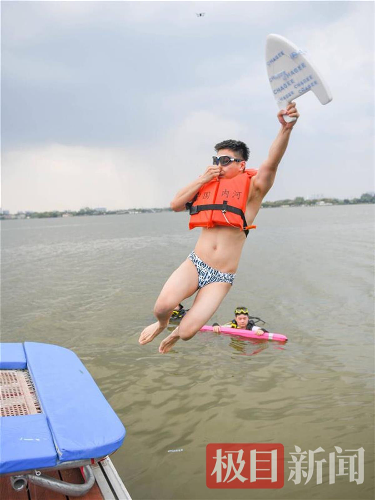 来自湖北荆州的汪文彬,亲身体验了一把“跳东湖”。“虽然今天天气炎热,但东湖水波清凉,跃入湖中的感觉刺激、舒爽!”汪文彬对极目新闻记者表示,随着东湖水上环境越来越好,桨板、帆船、皮划艇等亲水娱乐项目也越来越多,每年夏季在这里都能玩得不亦乐乎。