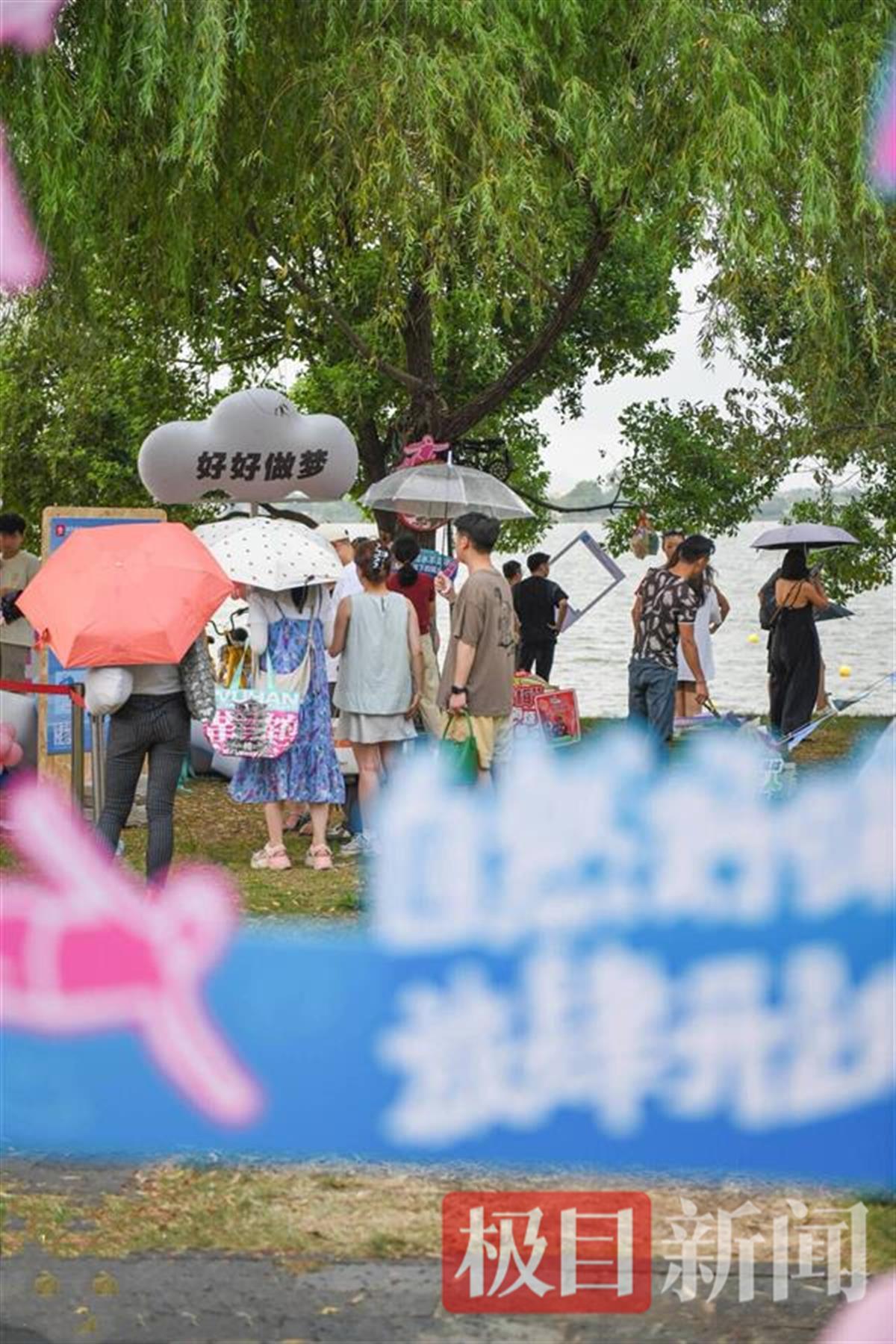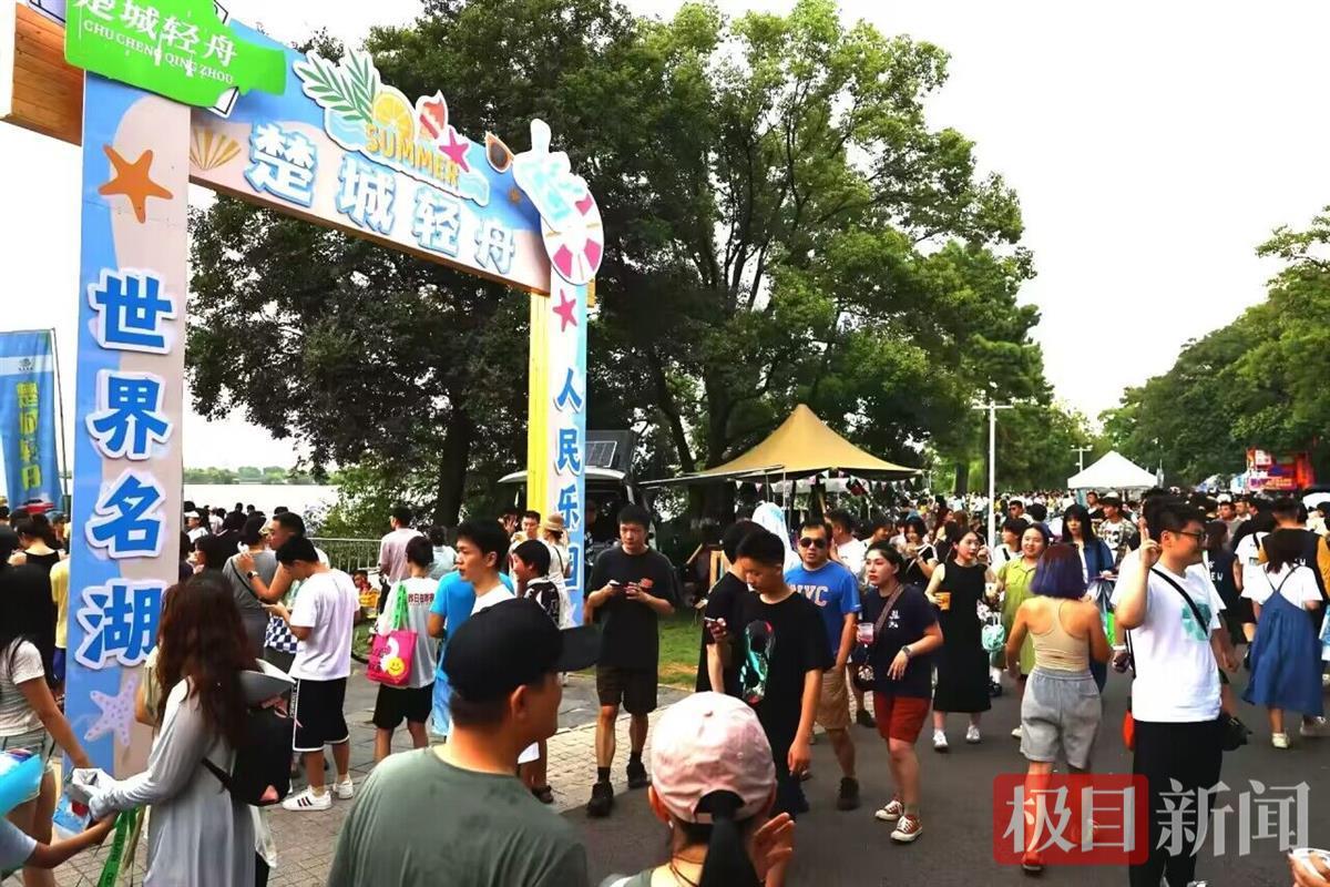此外,特色市集也是今年的一大亮点。“今年,‘跳东湖’邀请了90余家品牌入驻市集,包括啤酒、美食、户外运动等众多时下年轻人喜爱的元素,为广大游客提供更丰富的游玩体验。同时,今天也是七夕传统佳节,活动现场特别设置相亲角。”武汉文旅集团东湖文旅公司相关负责人表示。