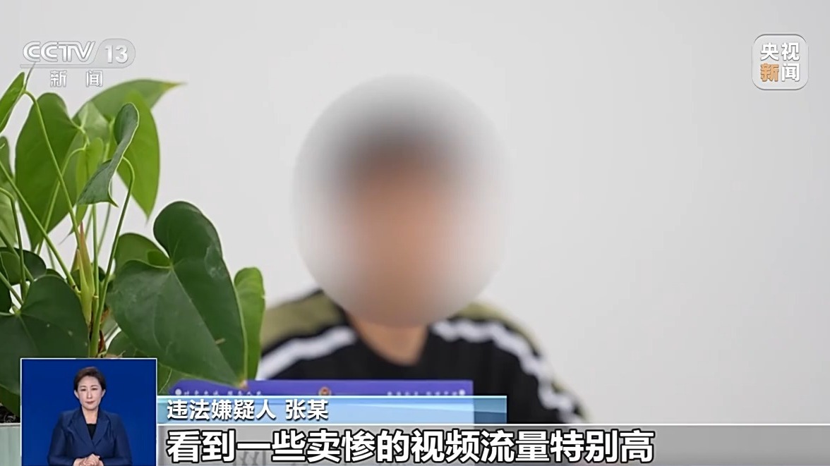 违法嫌疑人 张某:平时我刷短视频的时候,看到一些卖惨的视频的流量特别高,就想着自己的账号也能蹭点流量,可以变现赚点钱。然后我发现有网上有些农产品滞销的视频,它的流量还不错,我就想跟着做一个。