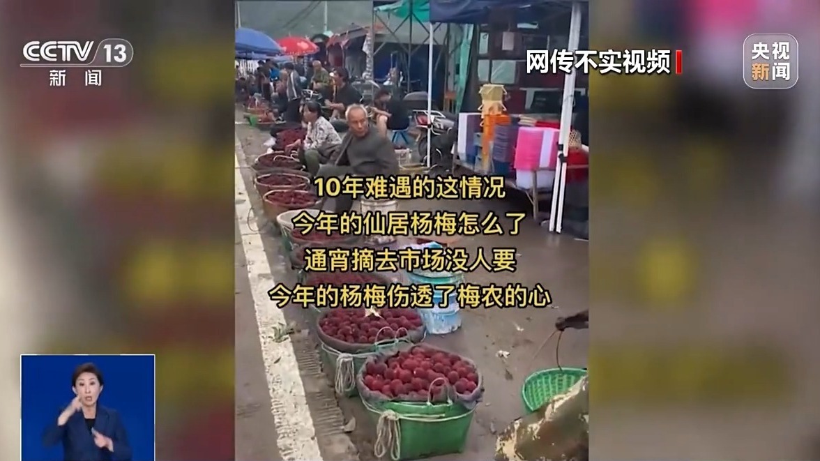 今年6月23日,浙江临海警方注意到涉及本地的两个视频,视频内容为果农在市场里摆摊售卖杨梅,却没有顾客购买的冷清场景,视频字幕还配上了“仙居杨梅滞销”等字眼。这让警方有些疑惑,本地杨梅不都是供不应求吗?怎么还出现滞销了。