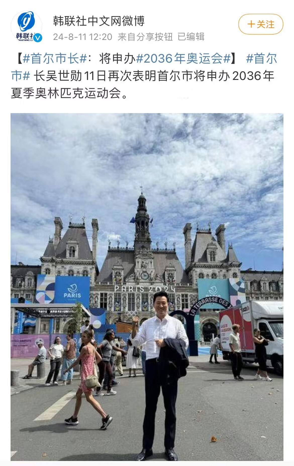 吴世勋当天在社交平台上发文称,首尔的竞争力来自基础设施等方面。在低碳、可持续、低成本奥运会成为大趋势的情况下,首尔将是最佳举办地。他指出,1988年首尔奥运会的基础设施原封不动地保留了下来,蚕室奥运会场馆将经现代化改造到2031年变身为体育、会展综合空间。吴世勋说,在参观巴黎奥运会场馆后,坚信首尔能做得更好。他强调,将凝聚此次奥运会的民心和正能量,再次向首尔奥运会奋力前进。