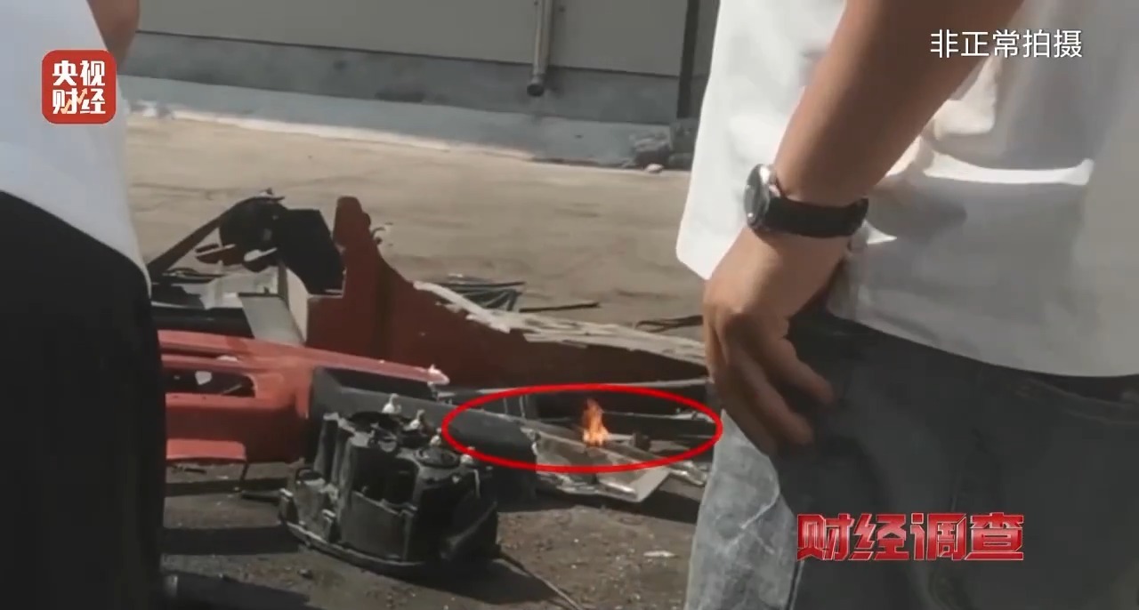 没有专业设备、没有环保措施,操作过程中,车架上不时燃起明火。不到半小时,一辆报废汽车的发动机和变速箱被整体切割拆下来。
