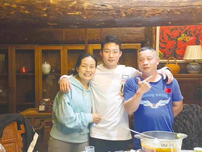 2019年10月底,王宗源(中)与父亲王迎飞、母亲赵毅的合影。(受访者供图)