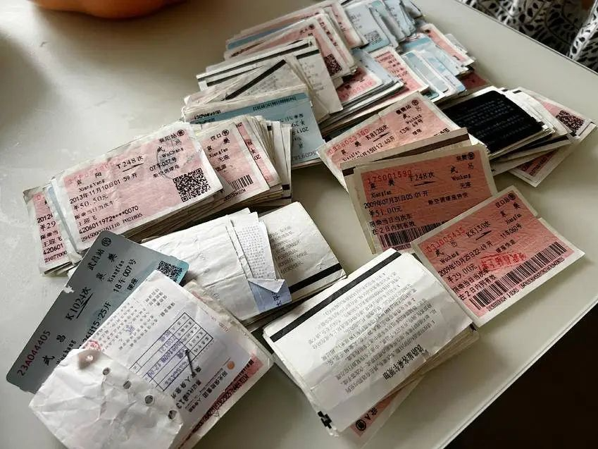 王迎飞和赵毅夫妇小心翼翼地保存着300多张火车票,从红色软纸票到蓝色磁芯票,从无座、硬座到卧铺、二等座,这沓火车票记录着王宗源离家16年的时光,也铭记着夫妇俩每周往返襄阳武汉探望儿子的爱。