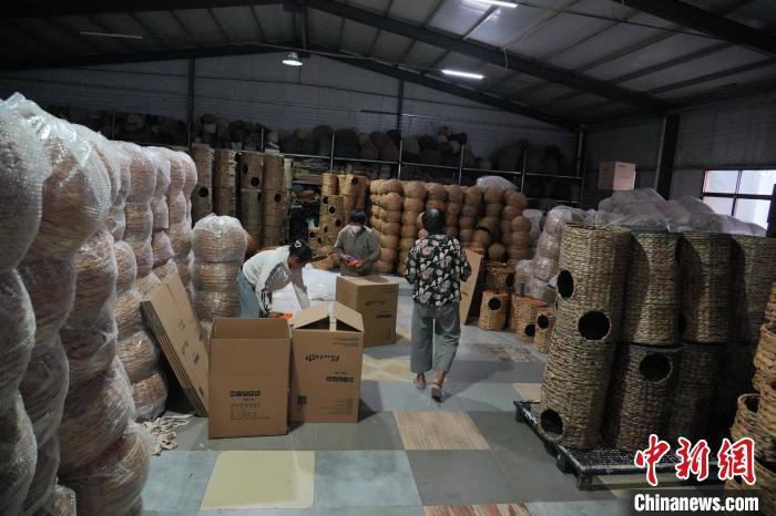 走进杨毅的工厂深处,意外发现几位当地村民正专注地编织着宠物爬架,其中一位便是马怀荣。“家家户户是工厂,男女老少都能编。”20多年来,农忙之余,马怀荣一直坚持制作加工柳编产品,用以补贴家用,多种柳编传统技法也都早已烂熟于心。“我们都是这附近的农户,以前主要是编些篮子、筐子,现在工厂会让我们上网自学编织猫爬架、猫窝等新潮产品,收入也提高了许多。”