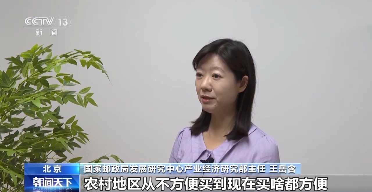 国家邮政局发展研究中心产业经济研究部主任 王岳含:农村地区从不方便买到现在买啥都方便,可以说快递行业正在助力中国农村实现消费形态的跃迁。
