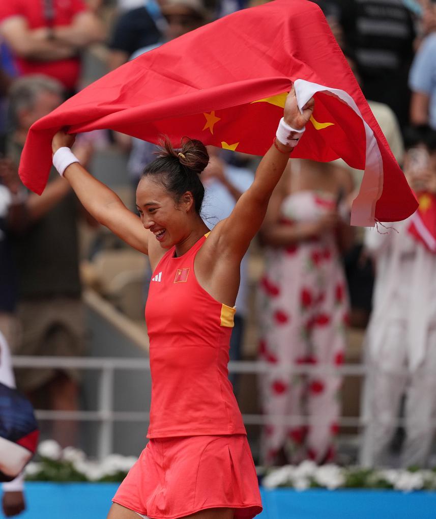 8月3日,在巴黎奥运会网球女子单打金牌赛中,中国选手郑钦文2:0战胜克罗地亚选手维基奇,夺得金牌。