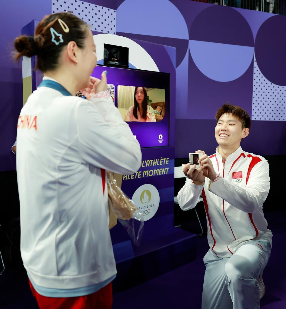 8月2日,中国羽毛球运动员刘雨辰(右)向黄雅琼求婚。