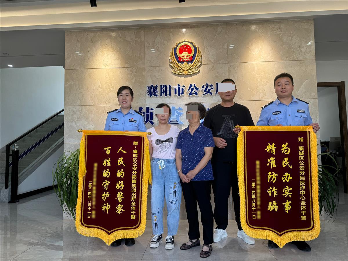 8月11日,家住湖北省襄阳市的黄老太拿着三面锦旗来到襄阳市公安局侦查中心,感谢民警帮她追回被骗的50万元现金。